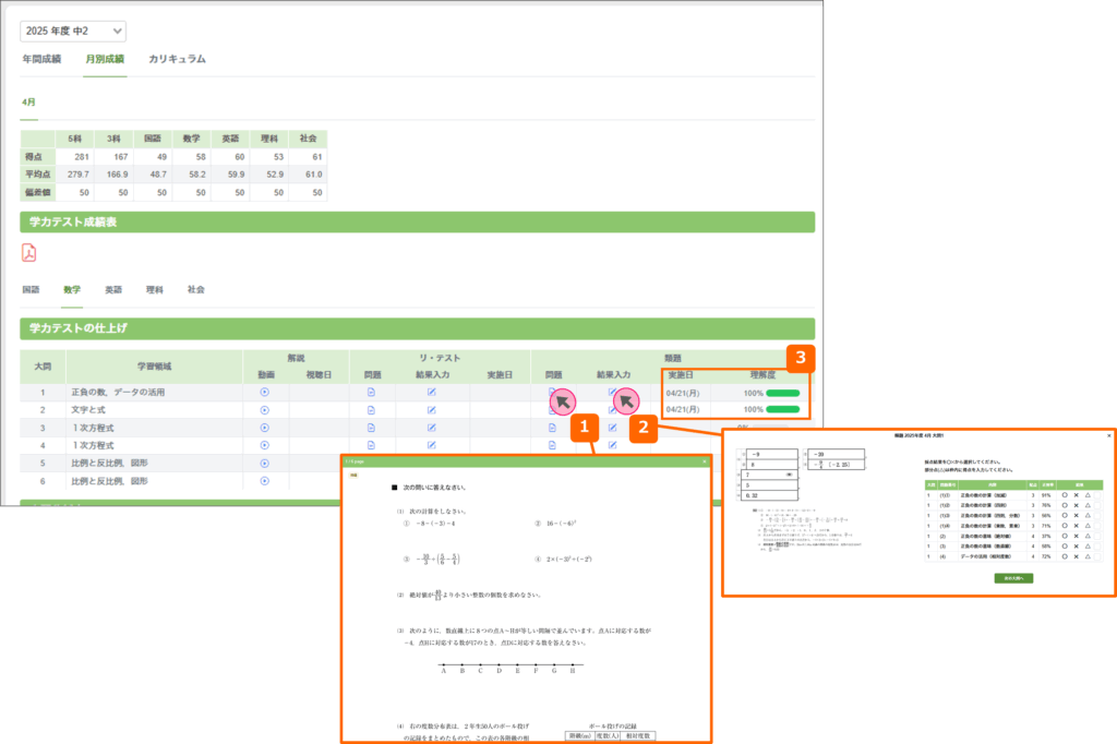 また結果内容は(得点/配点)×100 で算出し、理解度として表示されます。