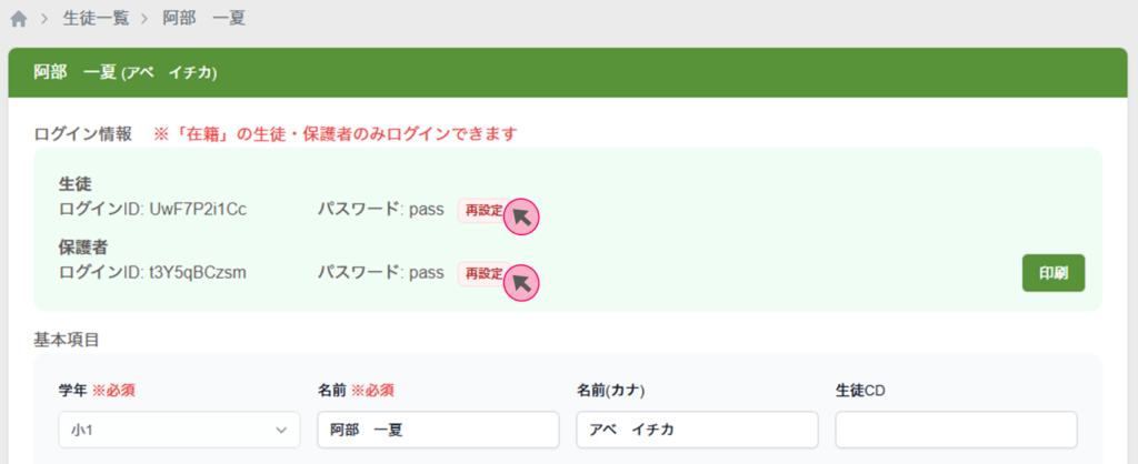 法人管理者・事業部管理者・教室管理者がパスワードを変更することができます。