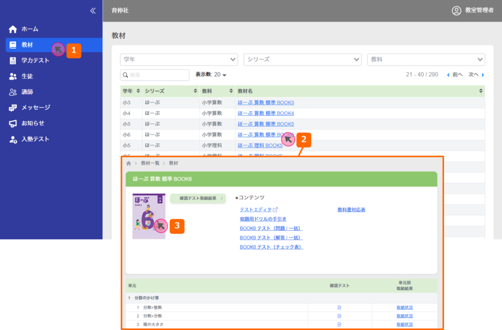 2.教材名をクリックして、教材のコンテンツ情報を表示します。