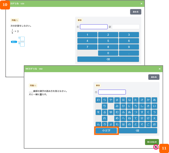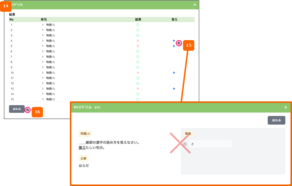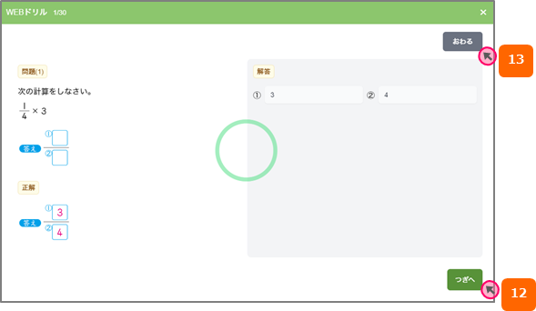 16.おわるボタンを押すと、WEBドリルを終了できます。