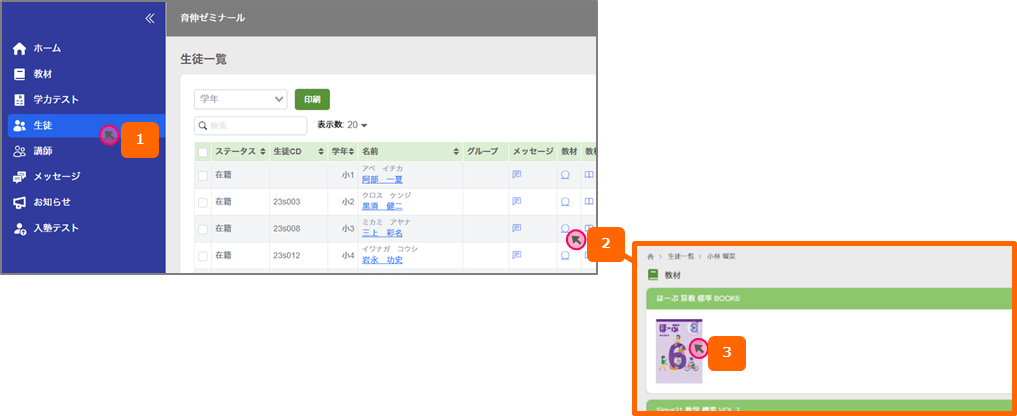 1.生徒をクリックすると、生徒一覧が表示されます。